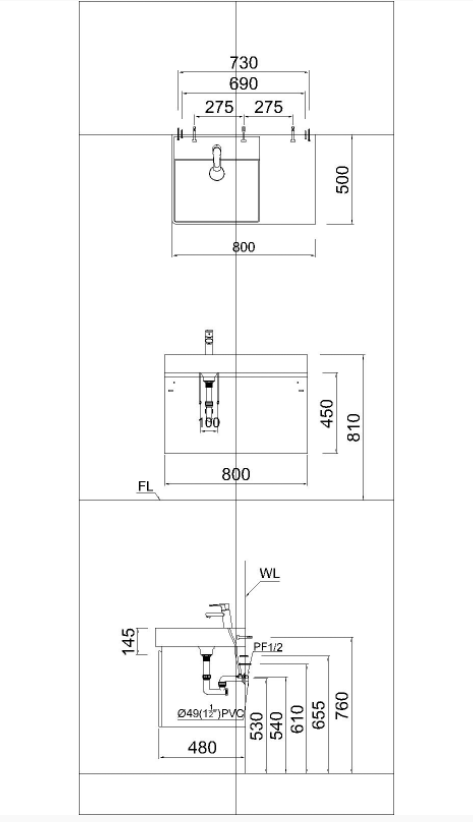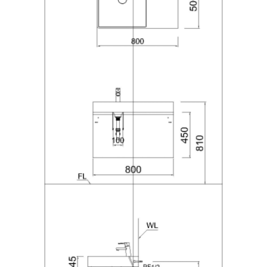 • Kích thước lavabo LF5382: 500 x 800 x 100 mm dài x rộng x cao)