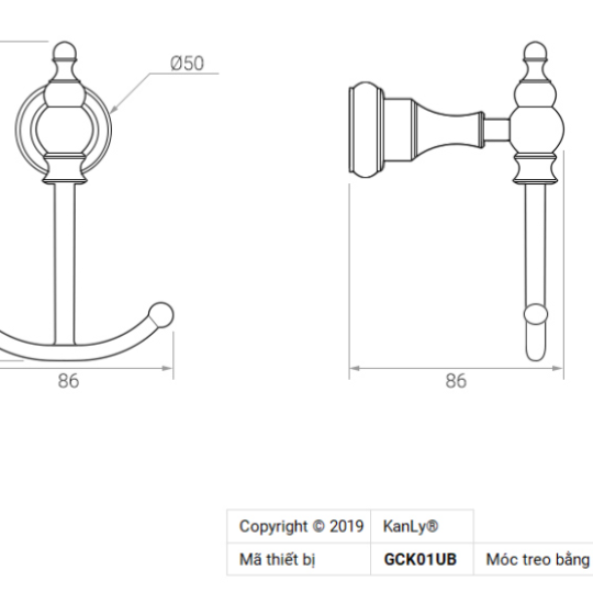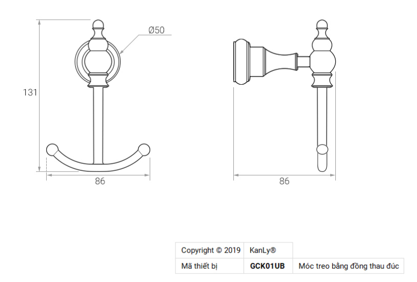 Bản Vẽ Móc Treo Đồ Đơn KANLY GCK01UB: